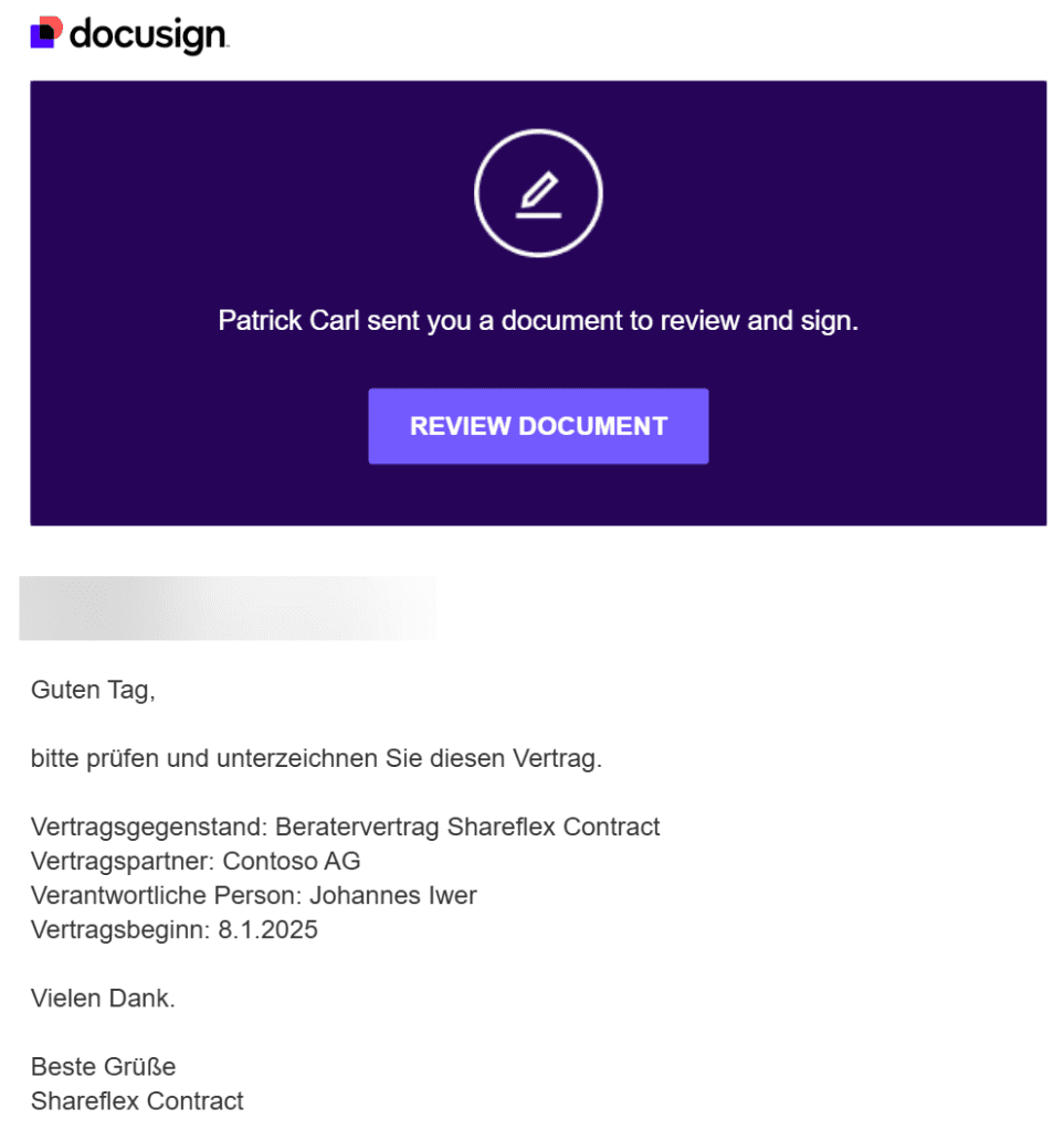 The Shareflex DigitalSign API module enables full integration of digital signature processes into Shareflex Contract and Shareflex Documents. Communication between Shareflex and the signature provider runs via the provider’s API.