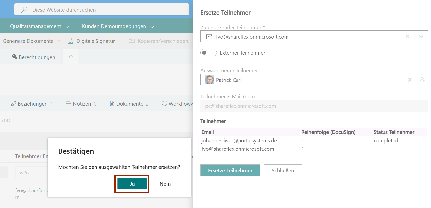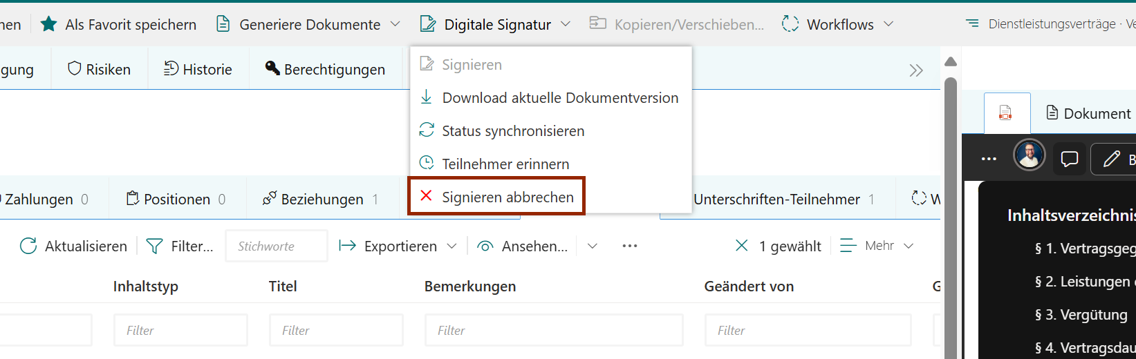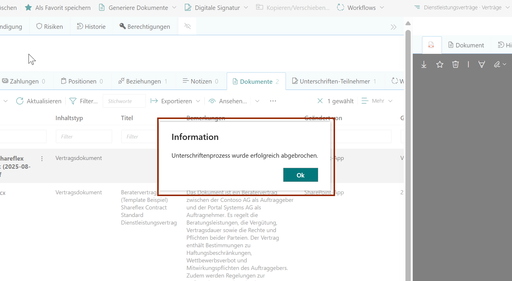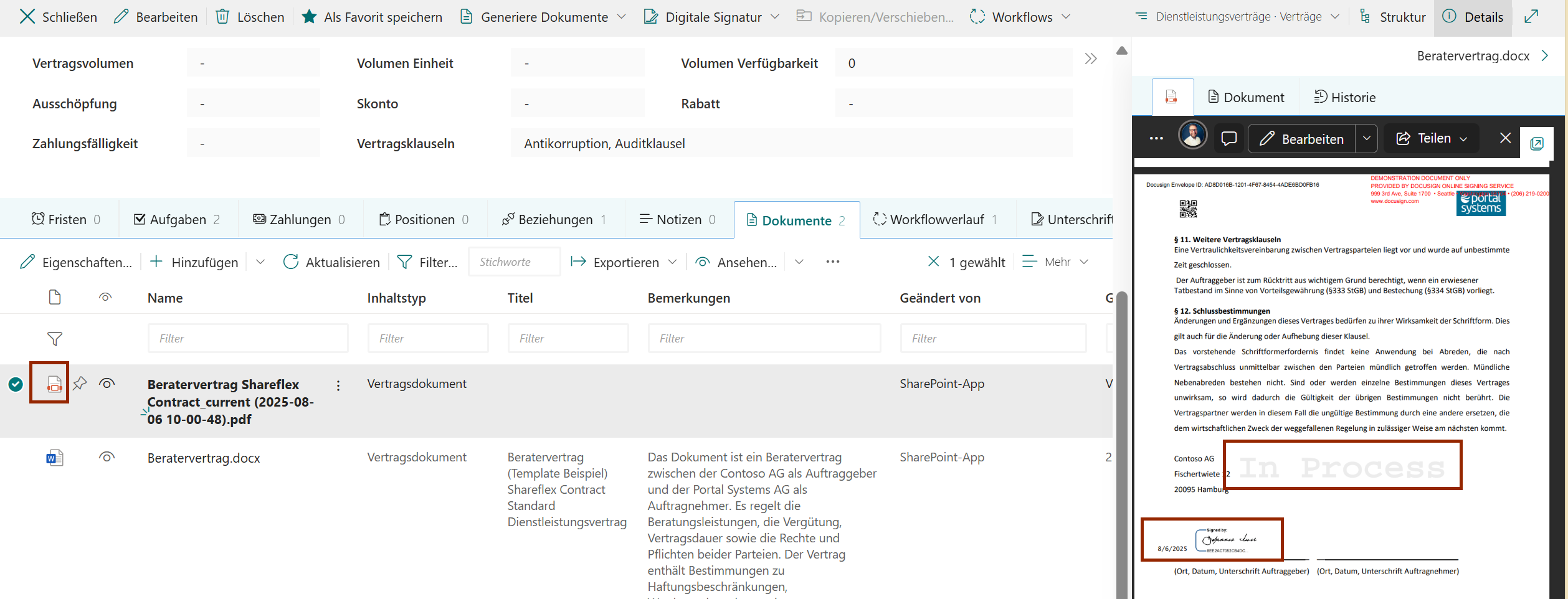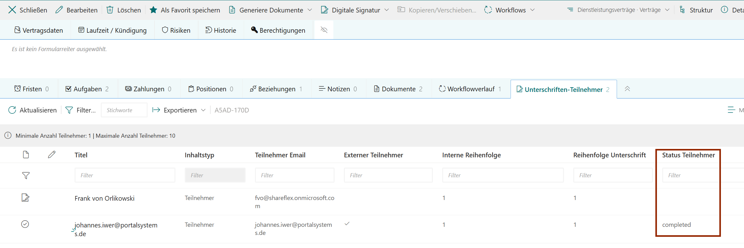 With the Shareflex DigitalSign module, users can manage signature participants directly in the Shareflex web interface. The secondary list in the contract/document file provides a clear overview of all participants and their status.