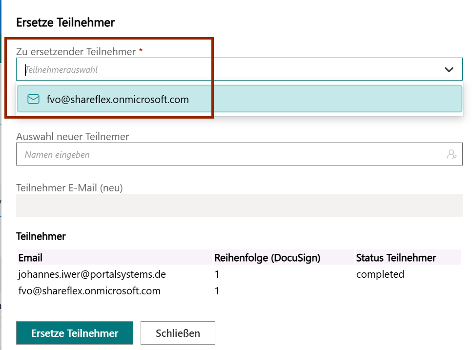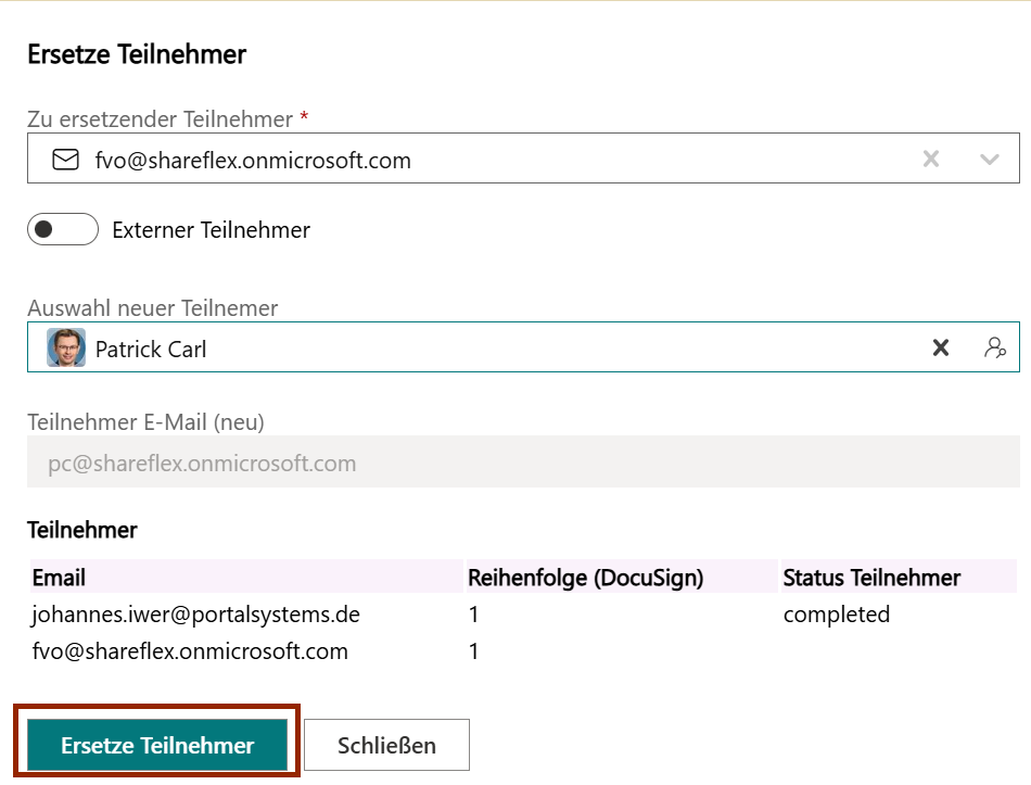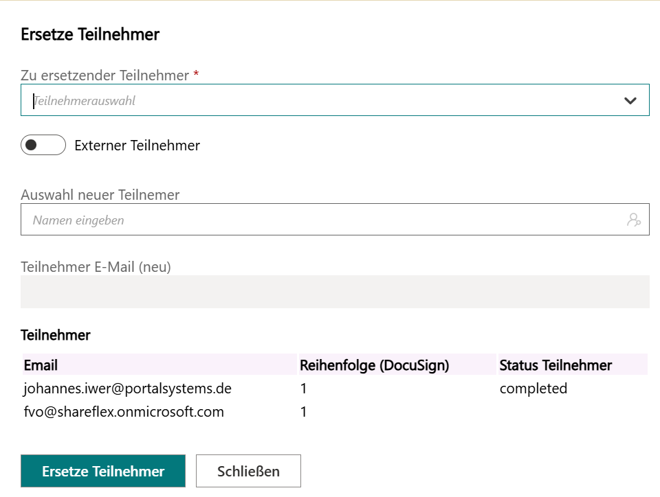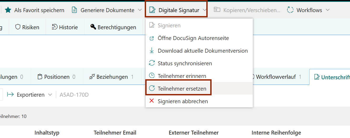 Participants can only be deleted before starting the signing process. Select the entry and click Delete (or use the